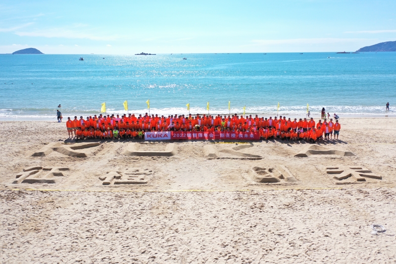 “新征橙,創(chuàng)未來”庫卡機器人185人團隊在亞龍灣紅樹林酒店沙灘進行一場主題團建。